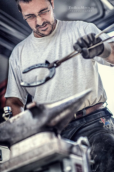 Der Weg zum Hufschmied: Nach der 3 1/2 jährigen Ausbildung zum Metallbauer in der Schlosserei Albert Roth in Herxheim arbeitete er 2 1/2 Jahre bei der Firma Albert Christ in Wernersberg, wo er seine praktischen Fähigkeiten zur Zusatzausbildung "Hufschmied" sammelte.